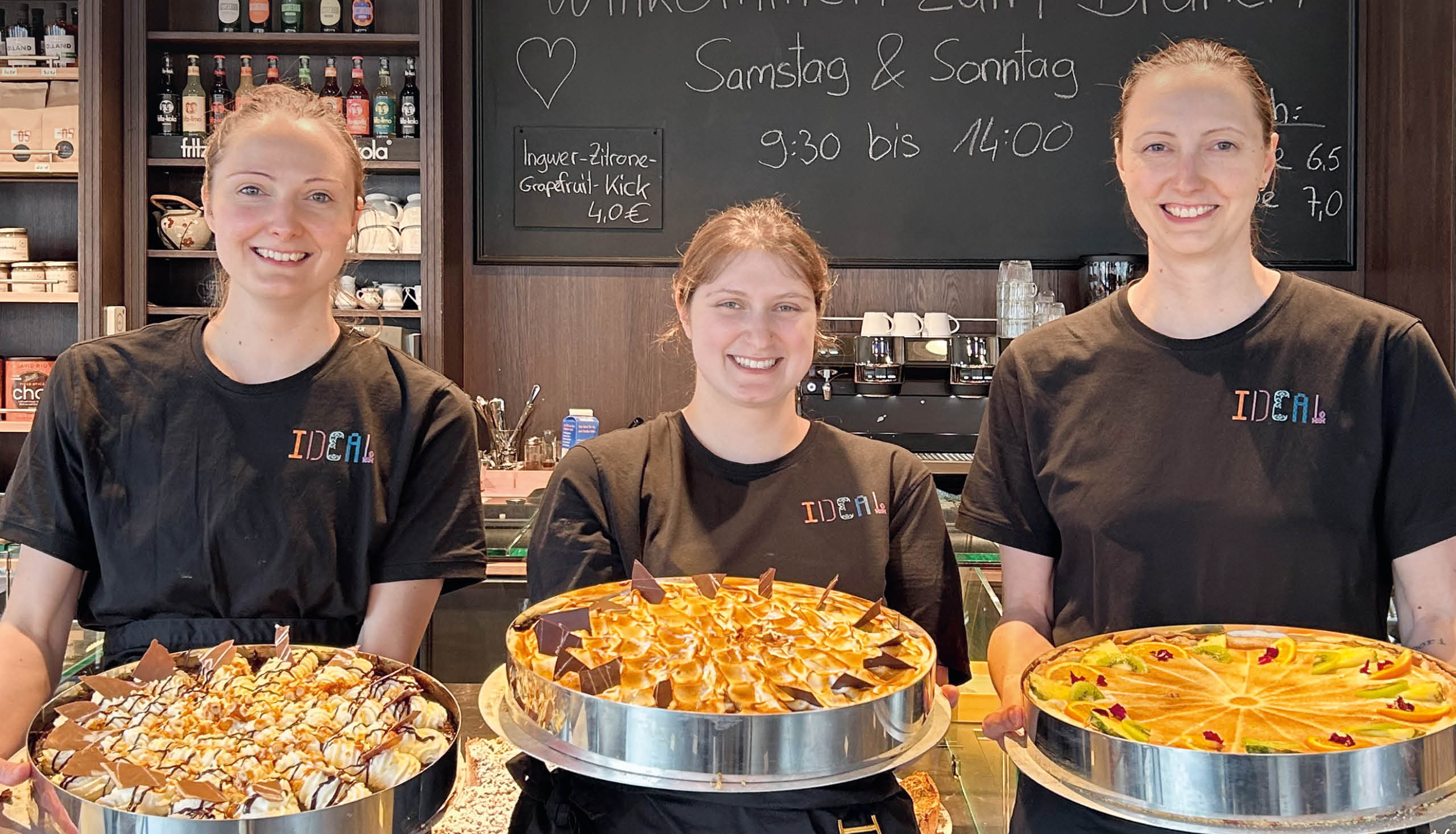 „Hier seht ihr von links nach rechts: Katja, Meryem und Anne. Anne und Katja sind die beiden Schwestern, die das Café zusammen leiten. Meryem ist die wunderbare Konditorin. Für unser abwechslungsreiches Tortensortiment haben wir rund 30 genau passende Backringe von Müller-Dekor im Einsatz.“