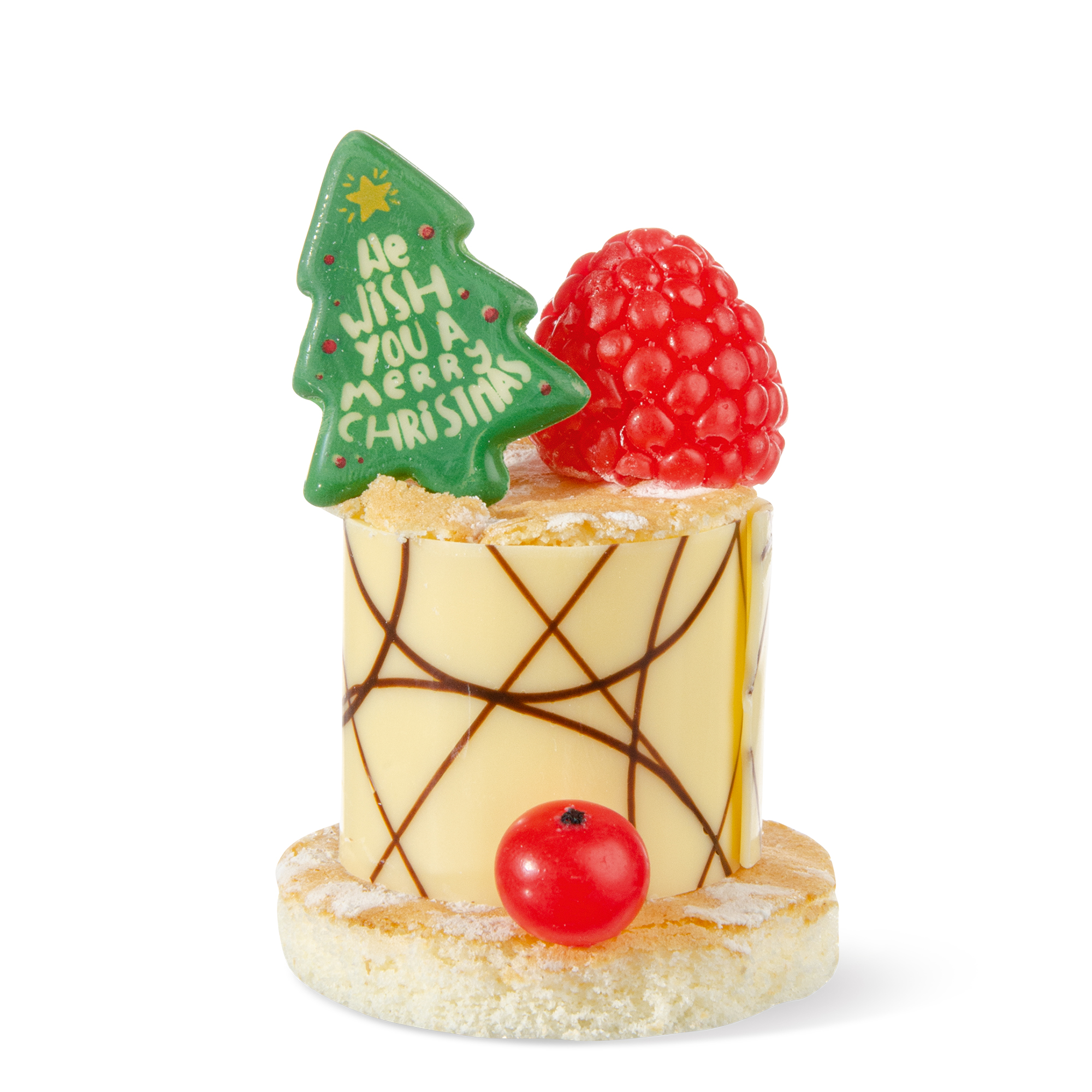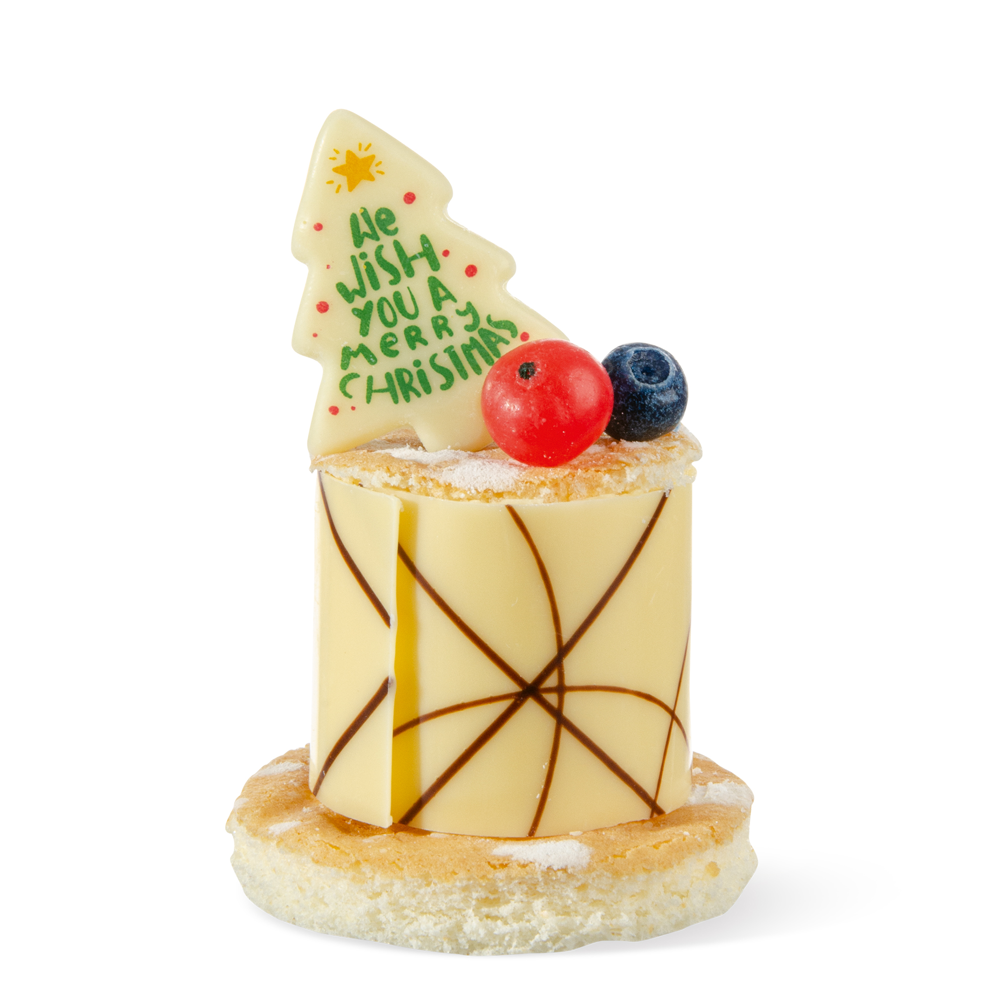 BÄUMCHEN AUFLEGER "MERRY CHRISTMAS", WEISSE SCHOKOLADE BEDRUCKT