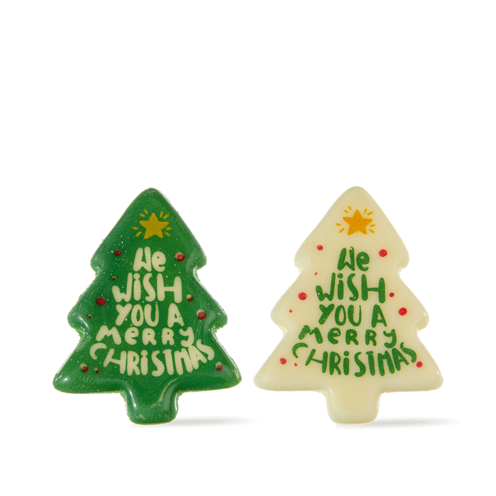 Farben SortiertBÄUMCHEN "MERRY CHRISTMAS" SORTIERT AUS SCHOKOLADE: