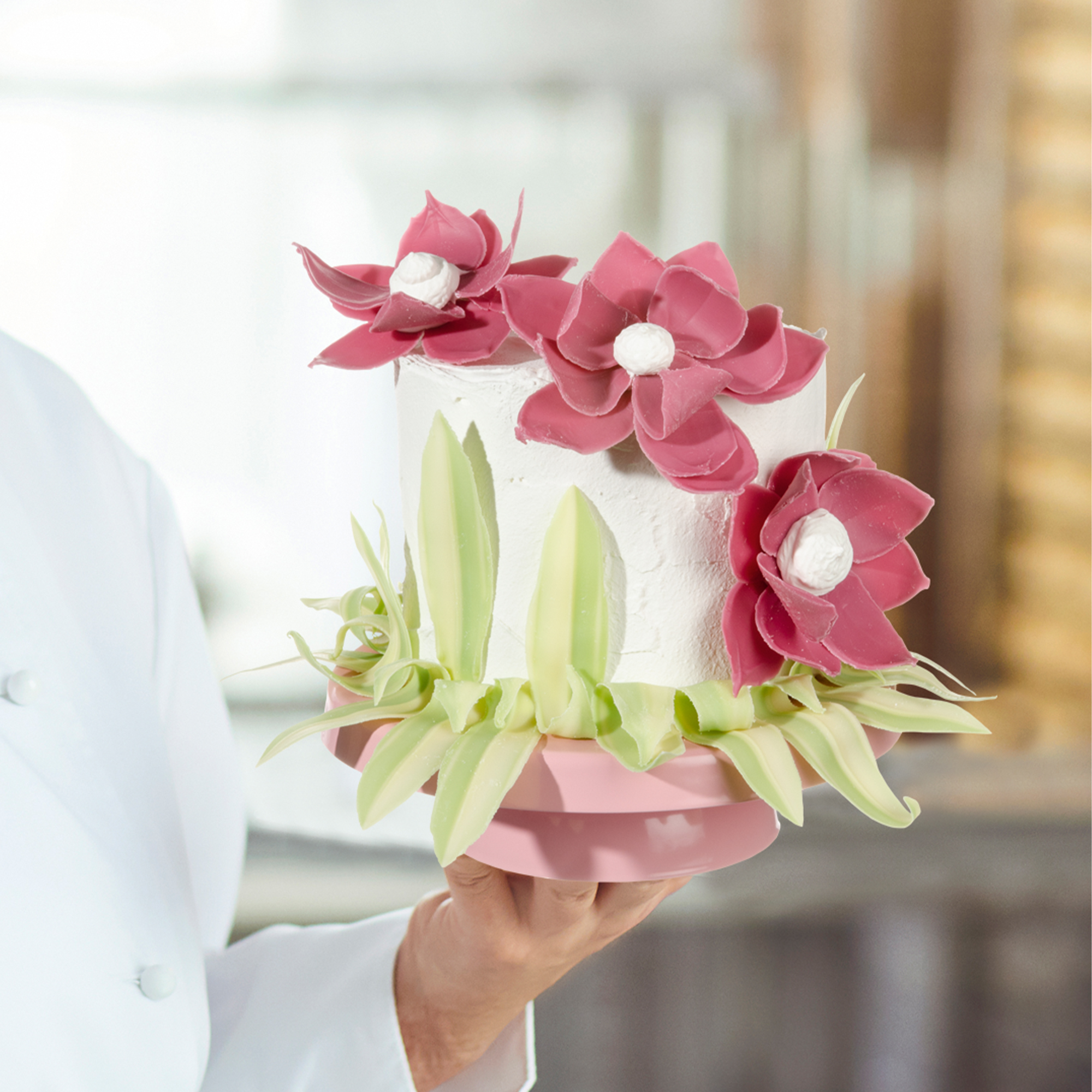 Diese eleganten grün-weißen Blätter aus Schokolade haben jeweils unterschiedliche Form und Biegung. Sie sind sowohl als Einzeldekor auf kleinen Törtchen und Desserts wie auch für kreative Blumendekors verwendbar. Verpackt sind sie in einer wiederverschließbaren Kunststoffbox.Feuchtigkeitsfest