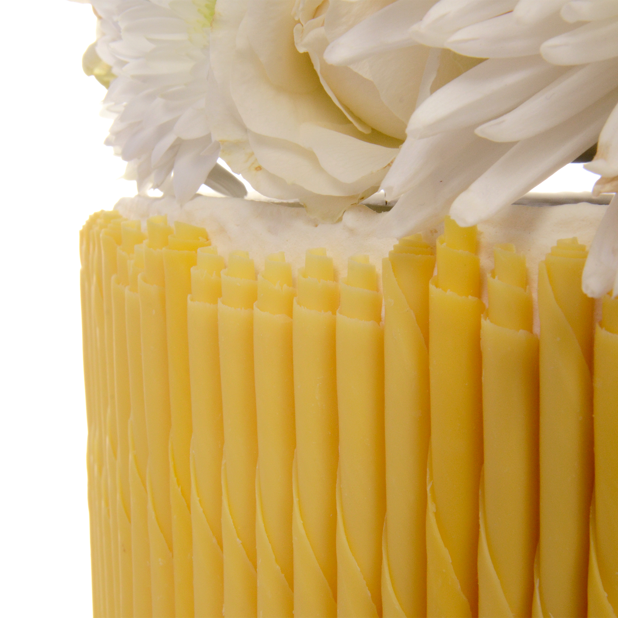 Bei der hier verwendeten FRESH CLASSIC 4 FRISCHBLUMENETAGERE in weißer Pulverbeschichtung gibt es zwischen den Torten spezielle Frischblumenteller mit Naßsteckschaum. Der wassergetränkte Steckschaum hält den üppigen echten Blumendekor für lange Zeit frisch.