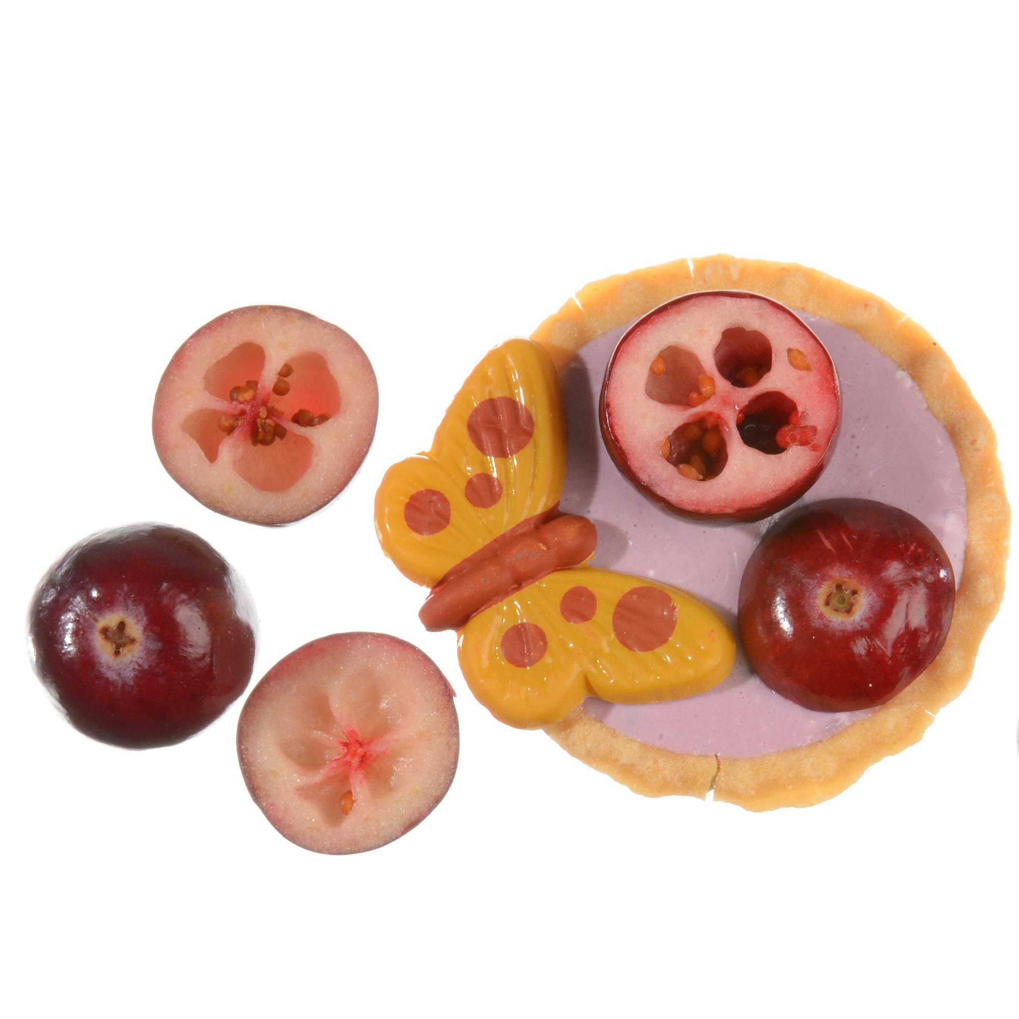 Diese kleinen Schmetterlinge sind aus weißer Schokolade hergestellt. Ihre plastische Form und der hübsche orange Aufdruck machen sie zu einem netten kleinen Blickfang. Als Aufleger sind sie für Ihre Torten, Törtchen, Tartlets, Cupcakes, Desserts und Eisbecher sehr gut geeignet. Verpackt sind die Schmetterlinge zu 90 Stück in einer bruchsicheren Spezialschachtel.Feuchtigkeitsfest