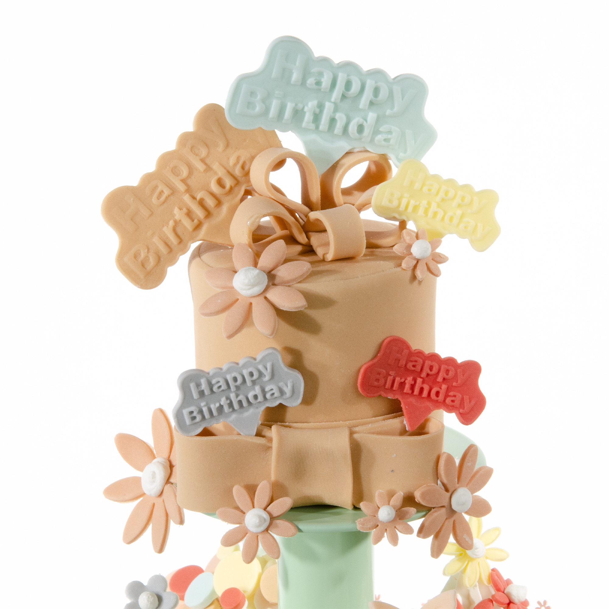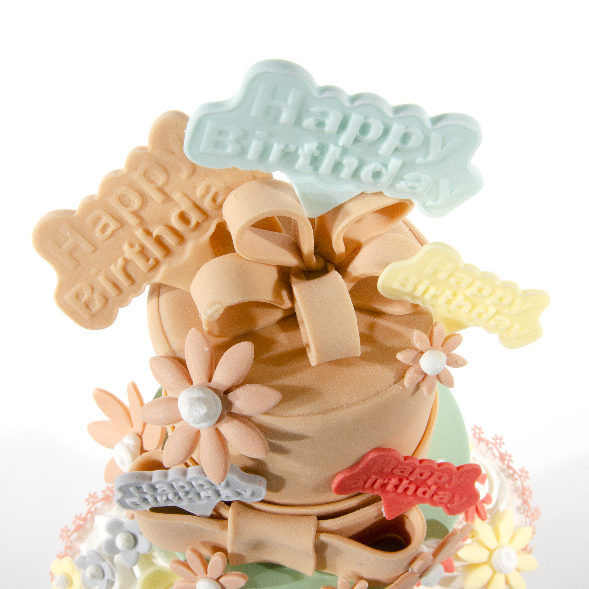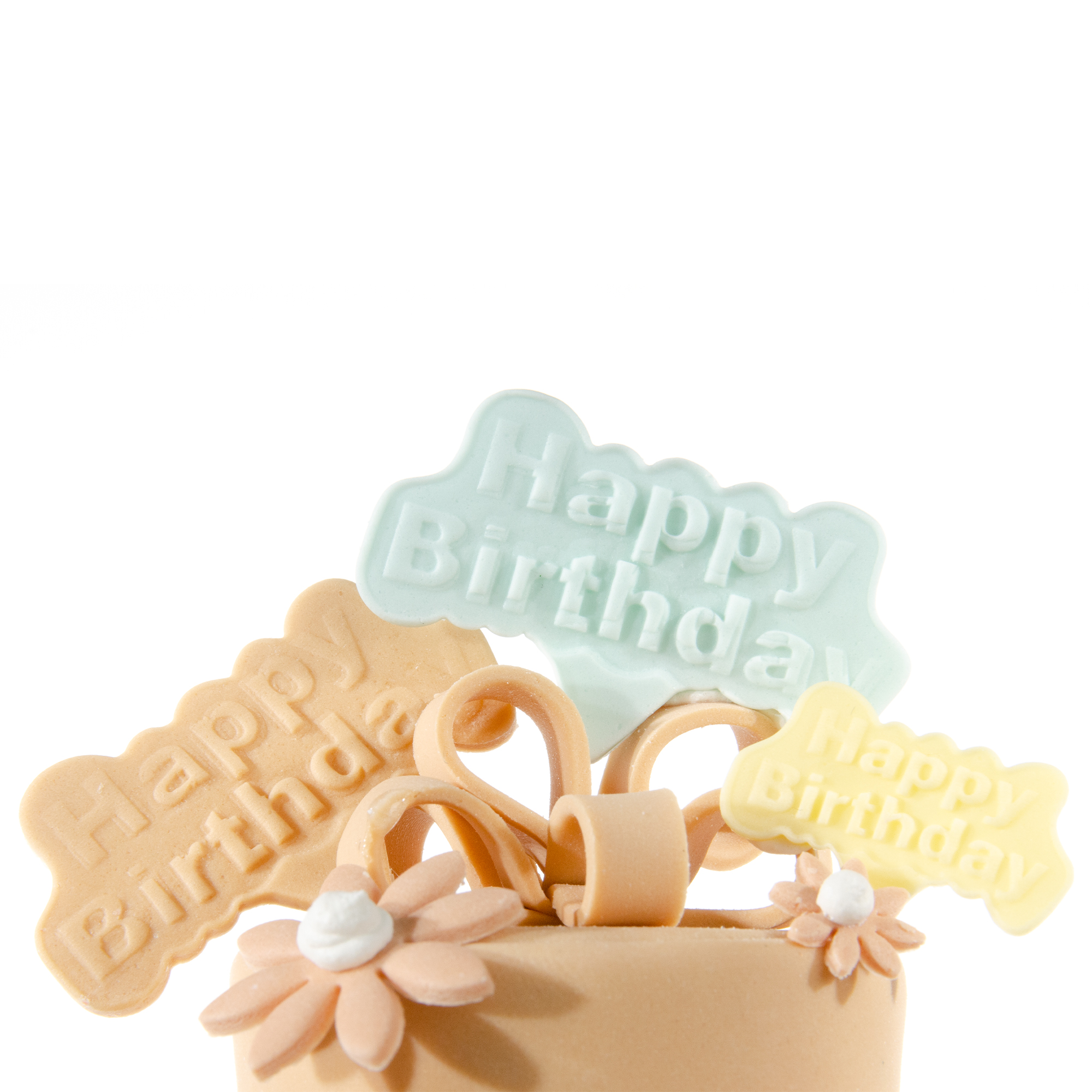 > Fondant Schlaufen für den Tuff und ausgestochene "Happy Birthday" Einstecker vorbereiten