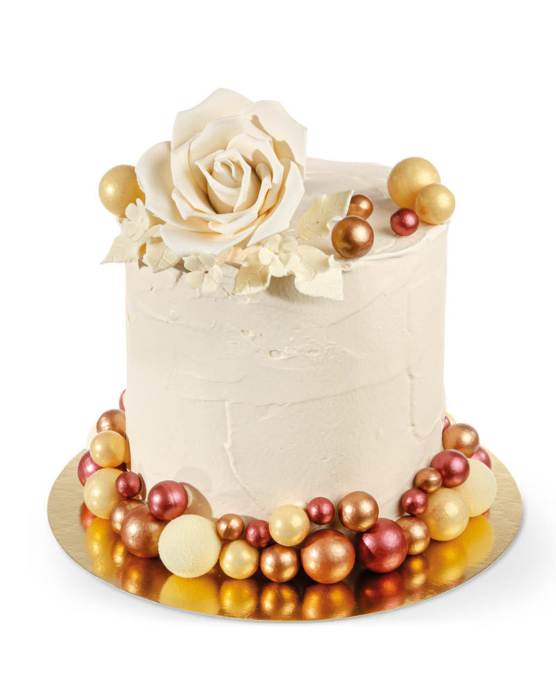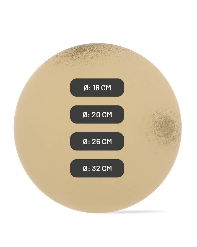 Die Oberseite dieser Tortenscheiben ist mit einem Gold-Polyester-Film kaschiert und sorgt so für eine edel elegante Wirkung. Natürlich ist dieses Produkt für direkten Kontakt mit Lebensmitteln geeignet. Große Torten und kleine Törtchen, Desserts und Tortenportionen lassen sich mit diesen Tortenscheiben ideal und wirkungsvoll für Verkauf und Verzehr präsentieren.