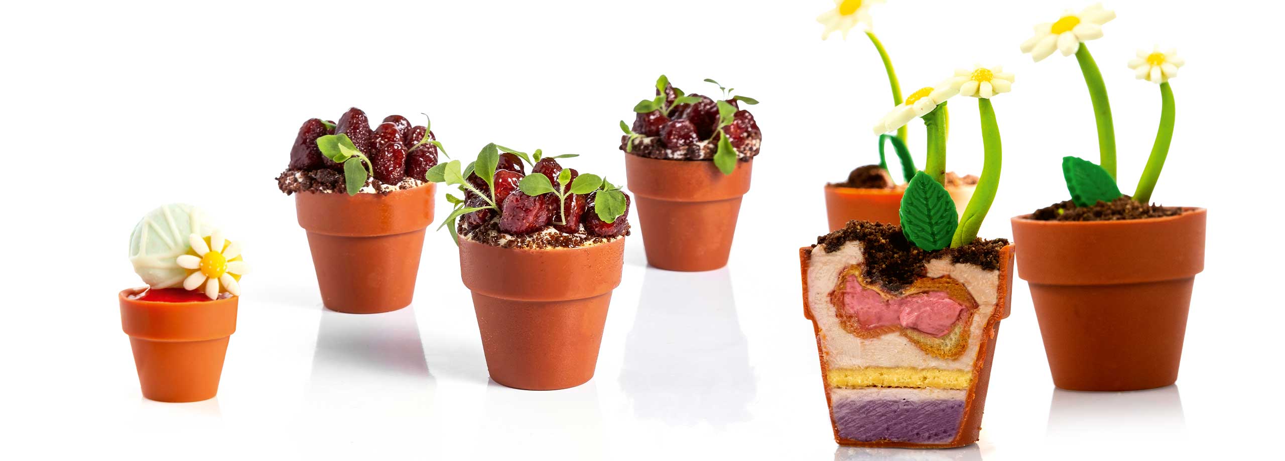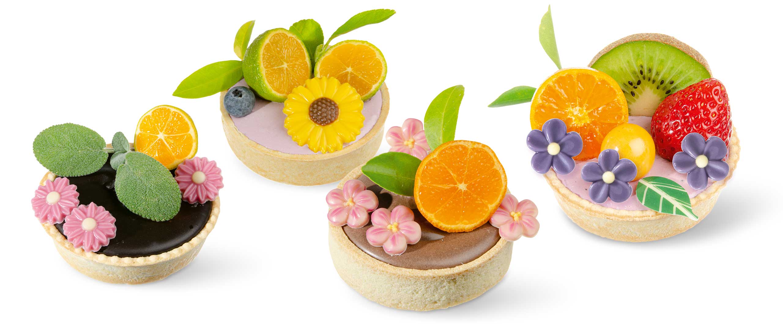 Mit bunten Blumen, grünen Blättern und Schmetterlingen aus Schokolade erfreuen Sie Ihre Kunden in der nahenden Frühlingszeit. Lassen Sie sich inspirieren von unseren Beispielen und Ideen mit fruchtig gefüllten Tartlets, Torten, Törtchen und Desserts!