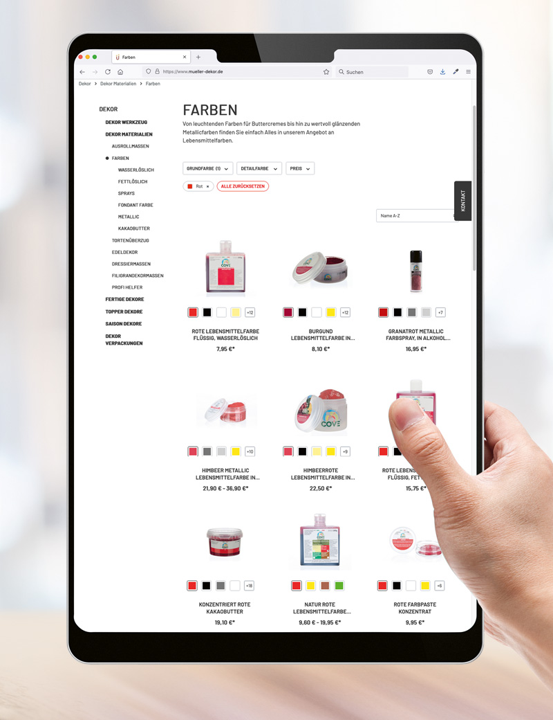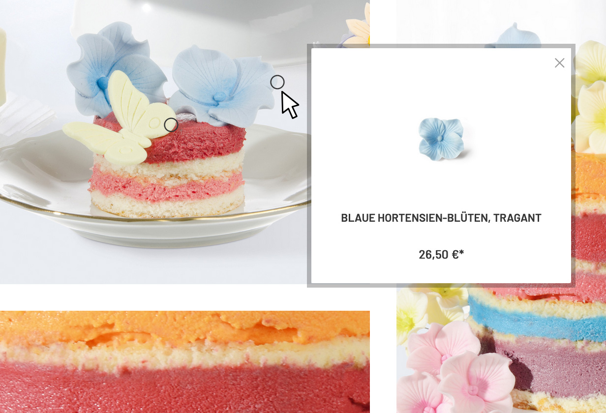 Die Leichtigkeit, mit der Sie die faszinierende Vielfalt und Farbigkeit der Dekors und Materialien erkunden können macht einfach Spaß! Alle erdenklichen Produkte, um Ihre süßen Kreationen dekorativ zu gestalten finden Sie in der Navigation. Jedes Produkt ist mit allen Informationen über Farben, Größen und Varianten präsentiert. Es macht Freude, zu stöbern und die beste Auswahl zu treffen.