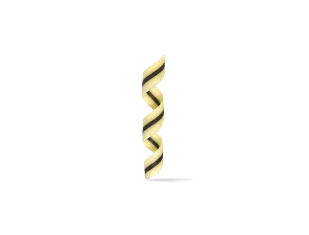 Eine essbare kleine Luftschlange, das ist dieser universelle spiralige Dekor aus natürlicher heller und dunkler Schokolade.