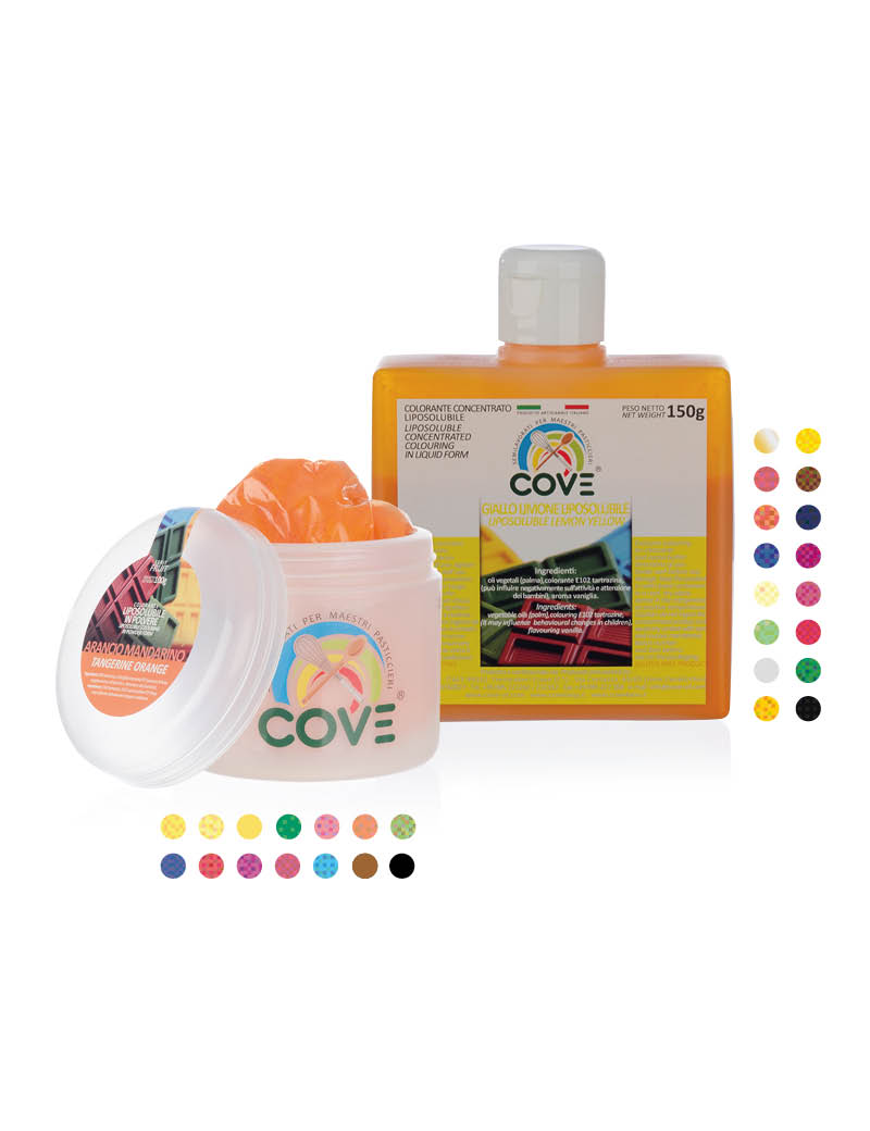 Für fetthaltige Cremes wie Buttercreme oder Sahne bieten wir 14 verschiedene fettlösliche Farben in Pulverform, wenn Sie in Ihrer Masse keinen Zuwachs an Flüssigkeit möchten oder 16 verschiedene fettlösliche Farben in pflanzlichem Öl gelöst, wenn ein kleiner Flüssigkeit Zuwachs kein Problem ist.