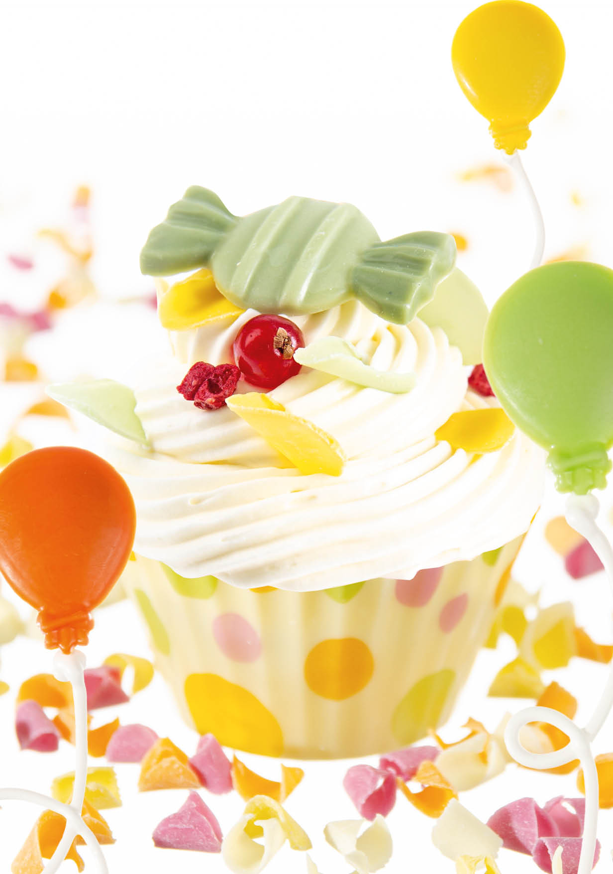 Viel Buntes aus bester Schokolade bieten wir Ihnen für die Faschingszeit. Es gibt farbigen Streudekor, lustige Aufleger und hübsche Cups zum Füllen.