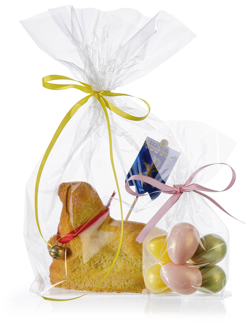 Unser großer Bodenbeutel passt perfekt für Ihre 500g Osterlämmer. Das farbige Bindeband ist besonders handfreundlich für kleine Schleifen.