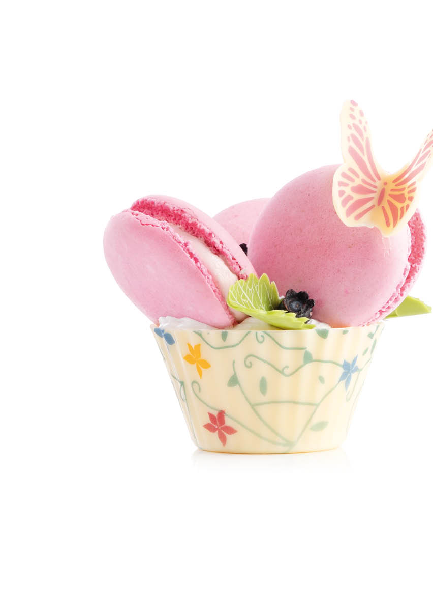 Die gefärbte weiße Schokolade hat einen interessanten metallischen Schimmer und ist super als modischer Aufleger für Torten, Törtchen, Muffins, Desserts und Eisbecher geeignet.