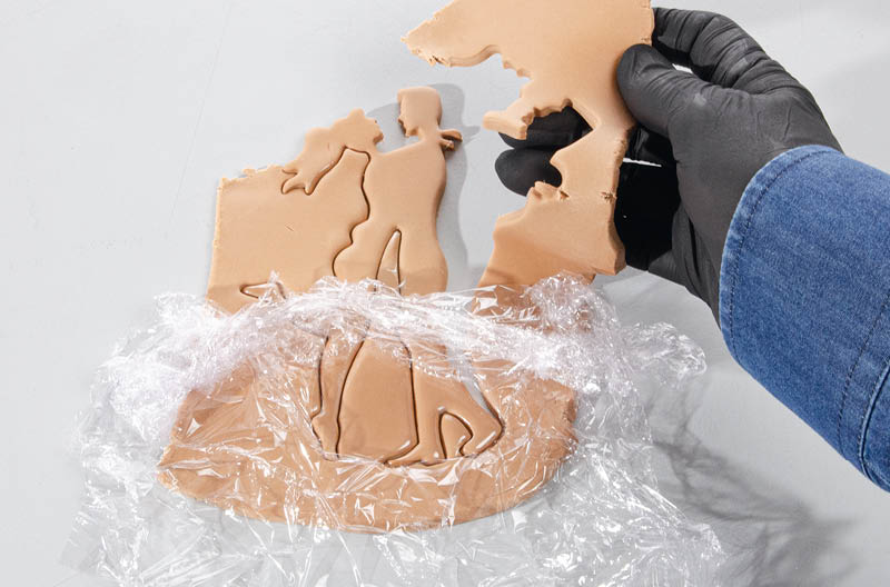 Die Frischhaltefolie und den Fondant rundum vorsichtig entfernen.