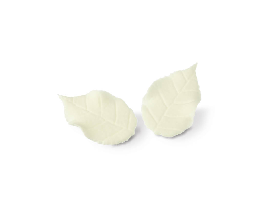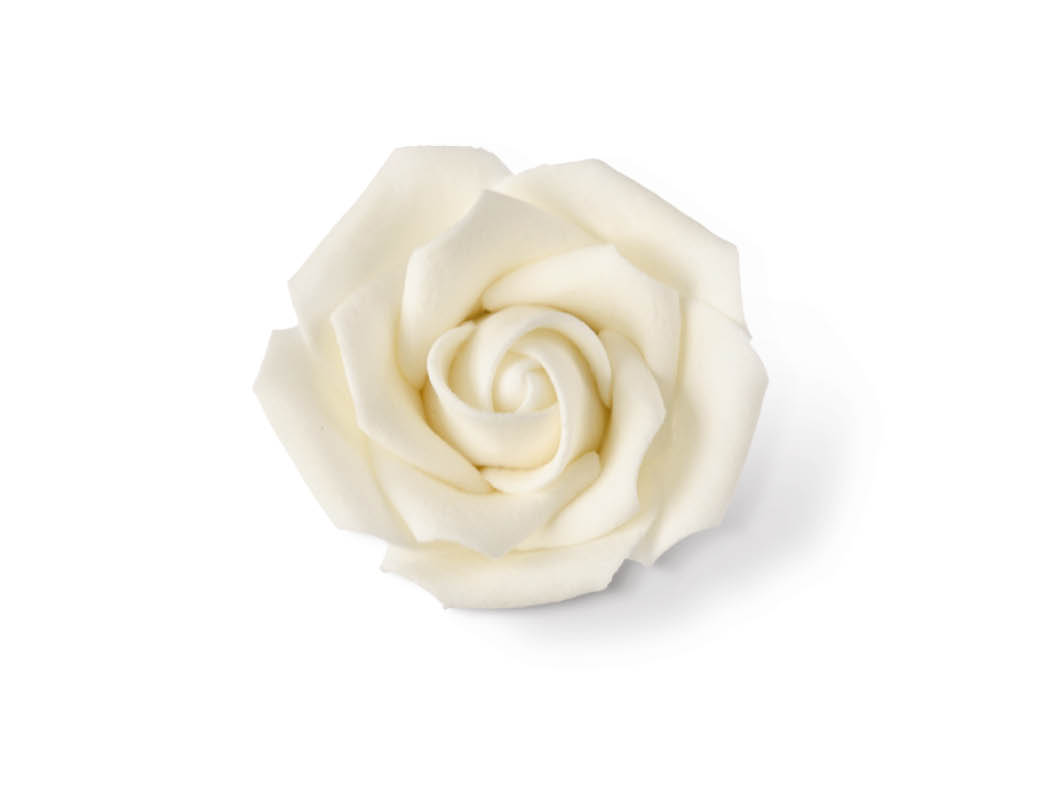 Aus unserer großen Farbauswahl passen zu dieser Torte die Rosen und Blätter in cremeweiss am besten. Die Rosen gibt es in 5 Größen, die Blätter in groß und klein.