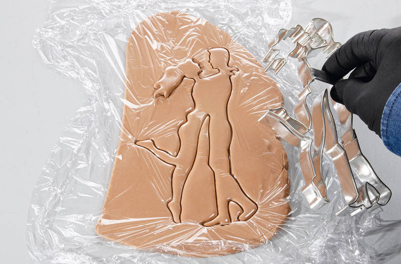 Den Sockel des Aufstellers aus Weißer Ausrollschokolade ausstechen.