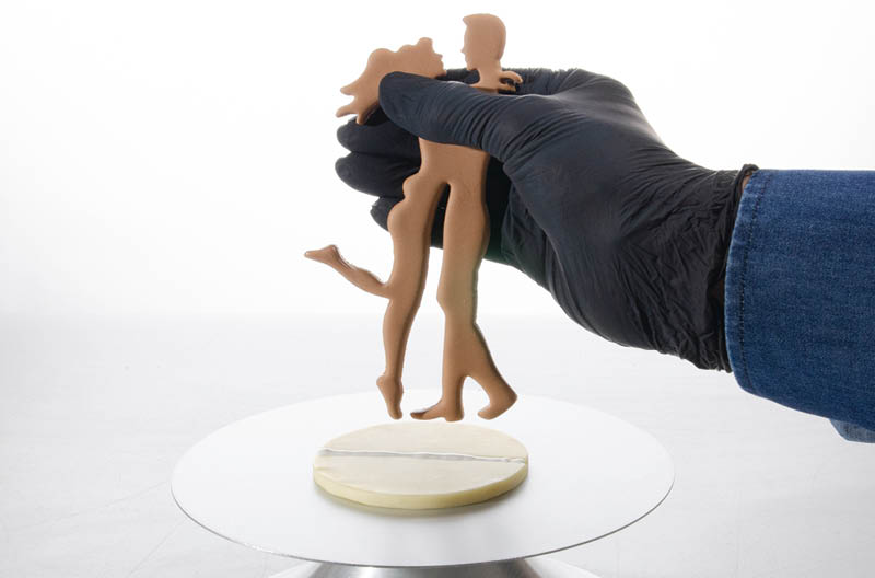 Eine passende Vertiefung zum Befestigen des Brautpaares eindrücken.