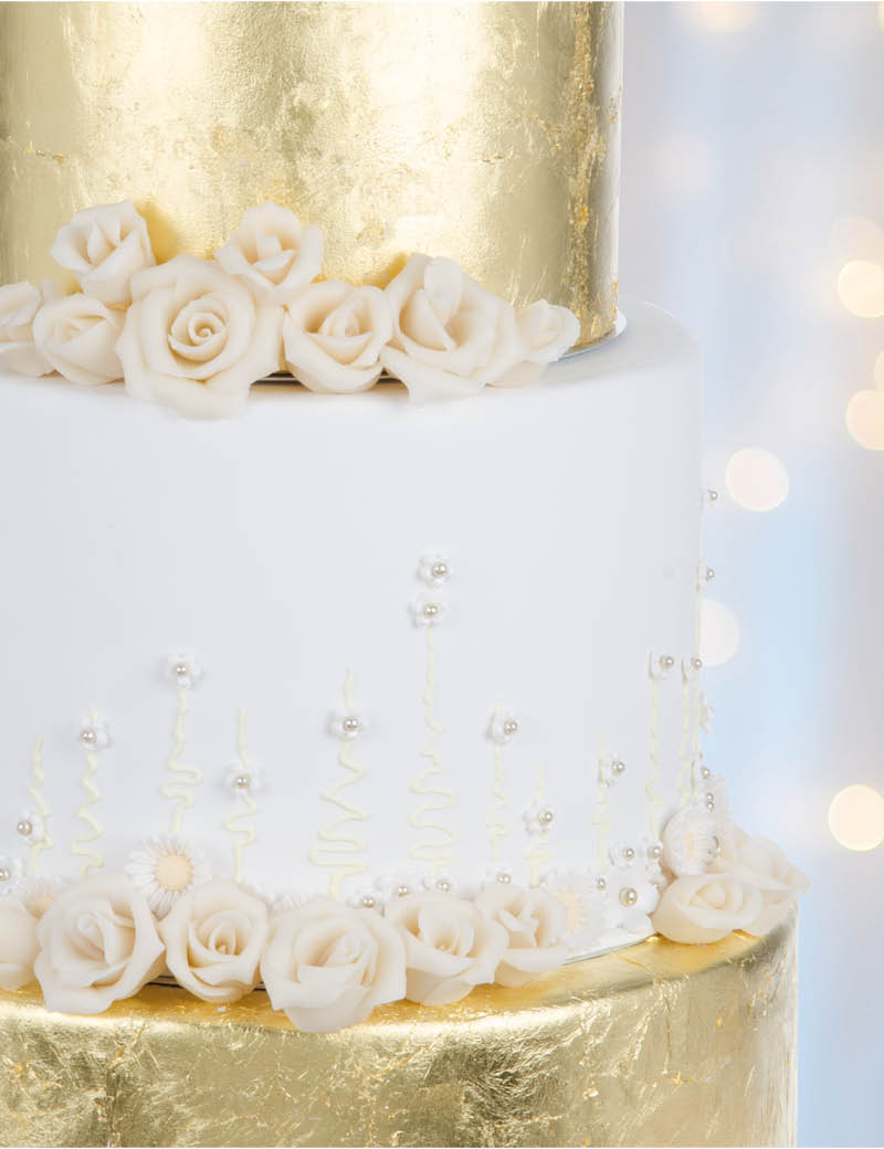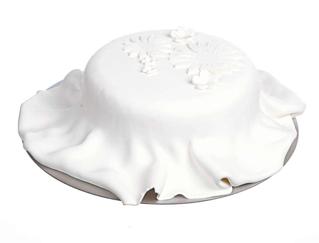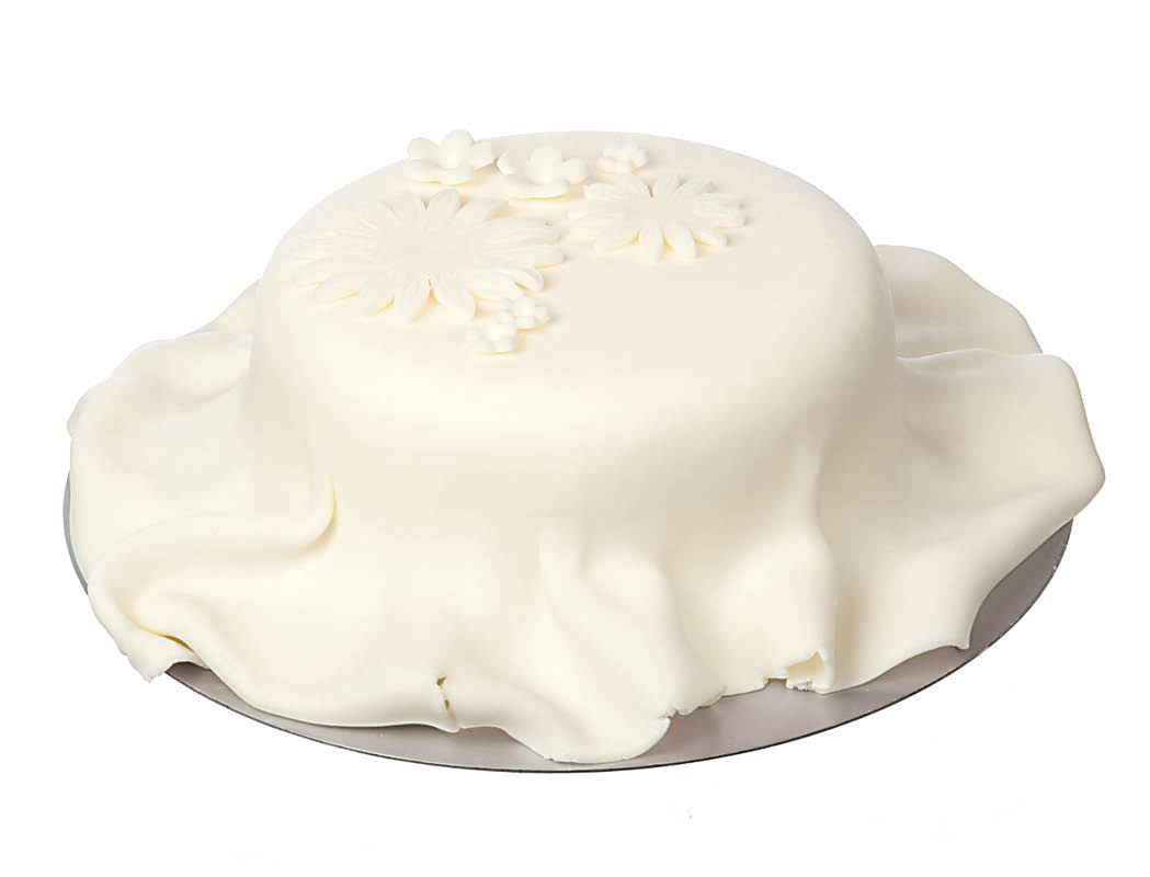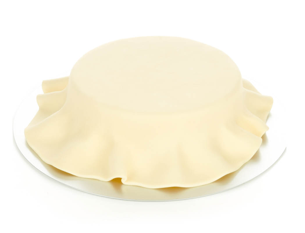 Diesen Ausrollfondant gibt es in hellem Weiß und ohne Aufheller auch in einem cremigen Weißton. Durch den Anteil an Kakaobutter ist er sehr gut zu verarbeiten und unempfindlich bei Feuchtigkeit und Kühlung.