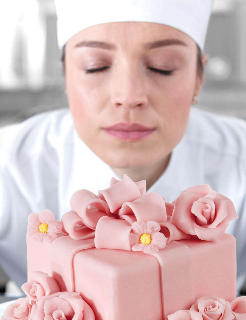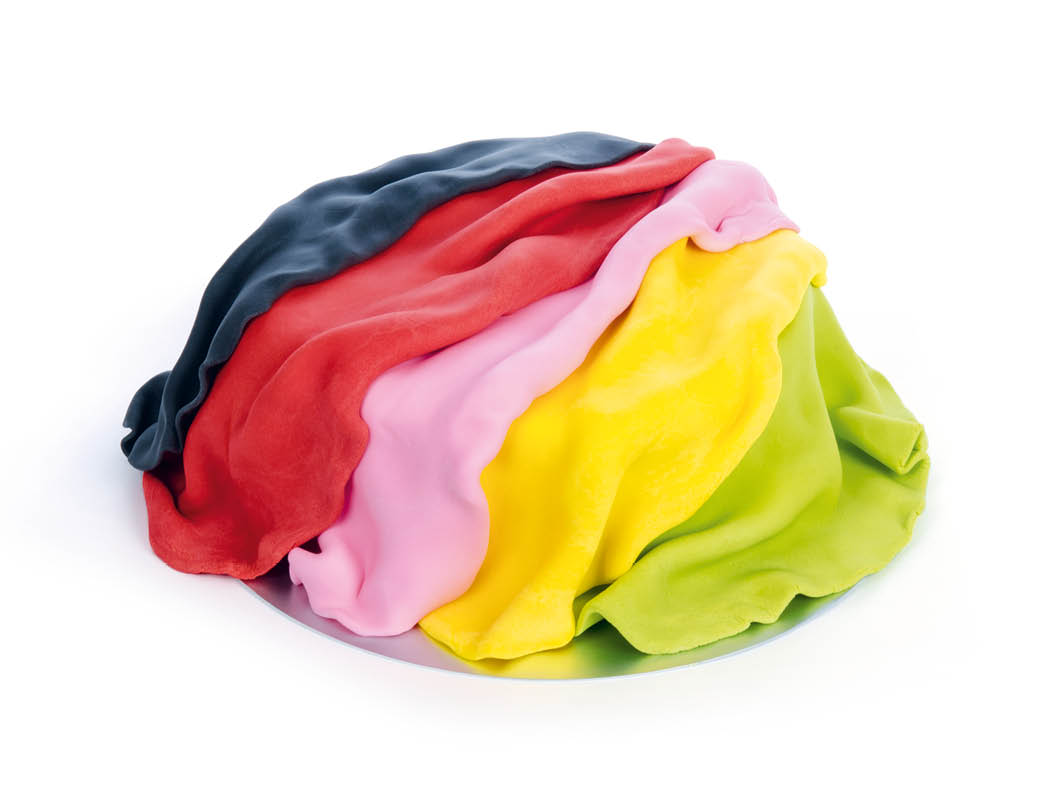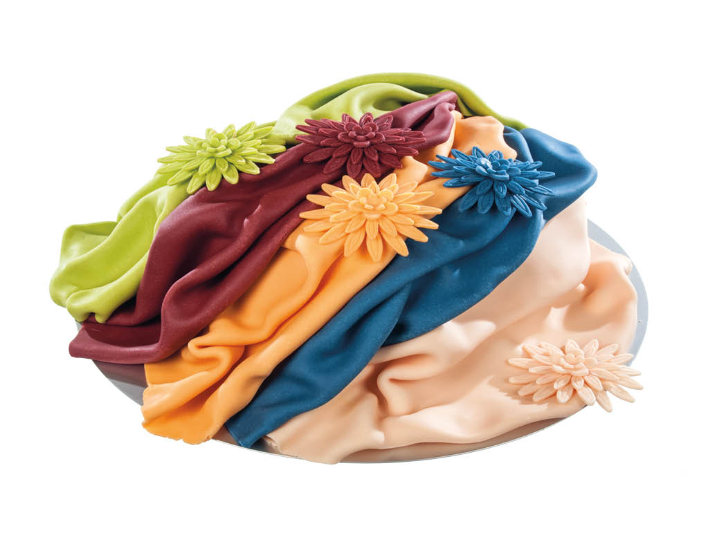 Der farbige Ausrollfondant ist in allen denkbaren leuchtenden, intensiv dunklen und cremehellen Farbtönen lieferbar. Durch seinen Kakaobutter-Anteil ist er sehr gut zu verarbeiten und unempfindlich bei Feuchtigkeit und Kühlung.