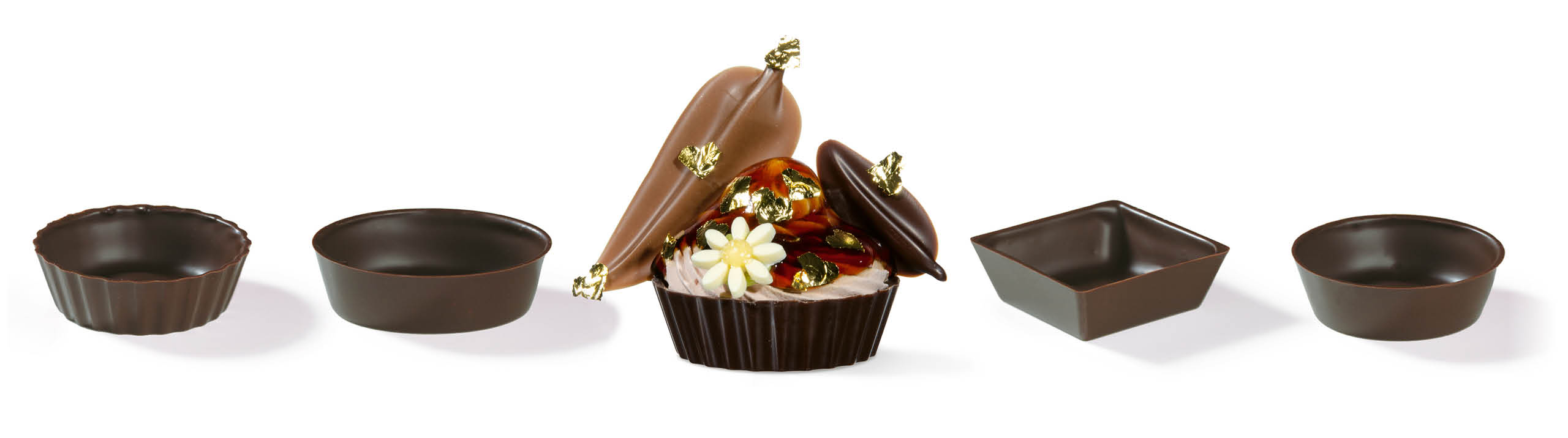 Passend für Ihre süßen Produkte im Herbst bieten wir Ihnen neue und altbewährte Dekore und Aufleger aus bester Schokolade.