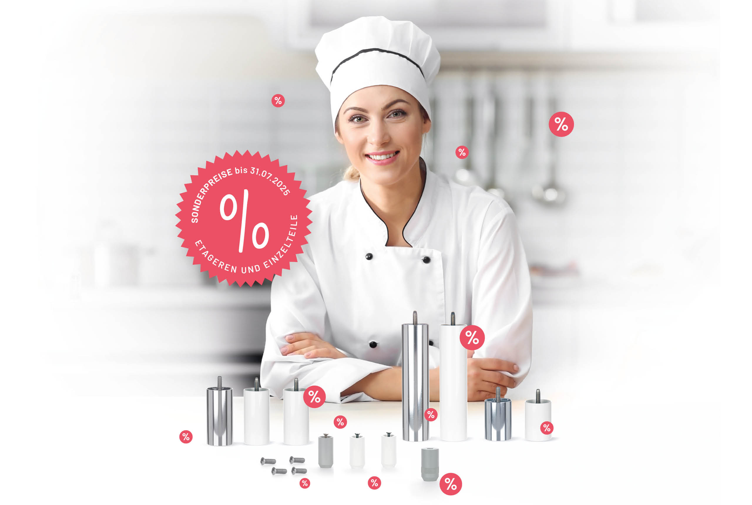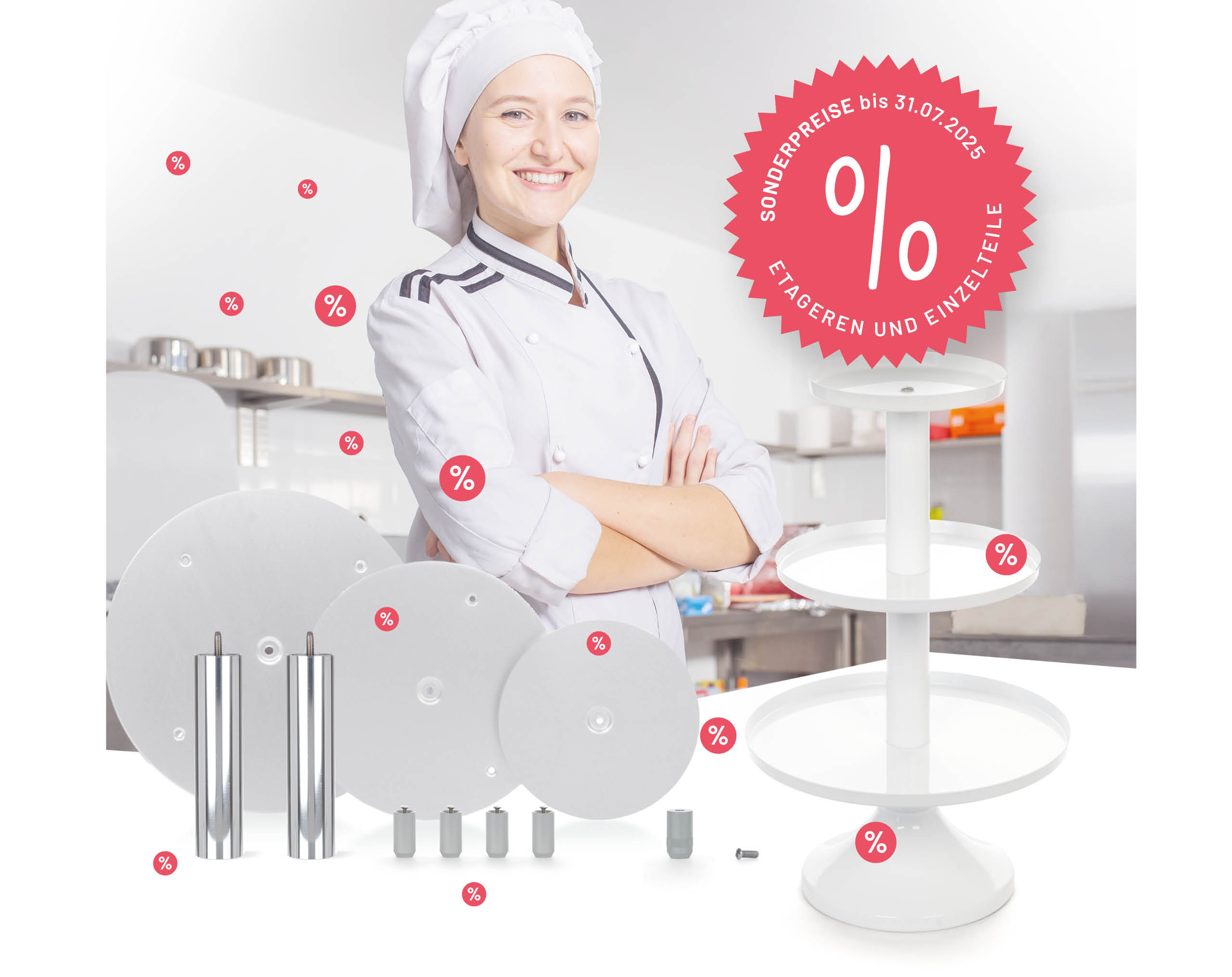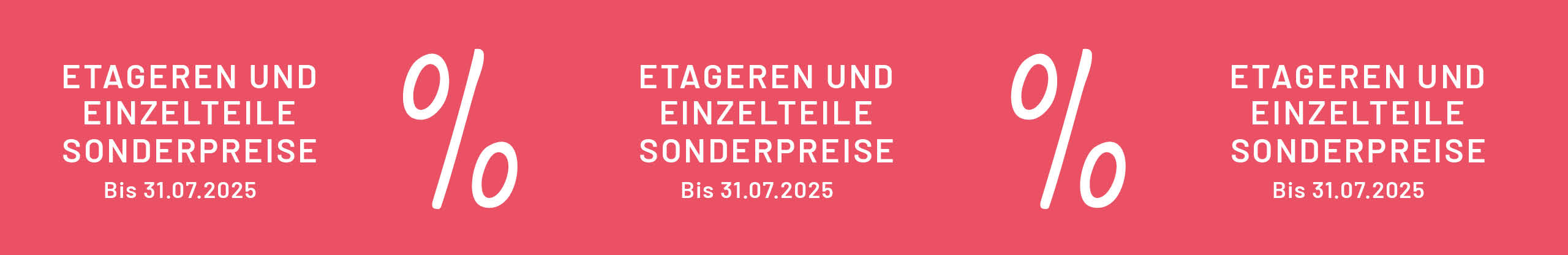 Nutzen Sie die enormen Sonderpreise für die ETAGEREN MIT SYSTEM und alle Einzel- und Ersatzteile. Es gibt bis zu 50% Preisnachlass gültig bis zum 31.07.2025. Wie Sie die Etageren und Teile verwenden können, zeigen wir Ihnen mit interessanten Tipps und Beispielen.