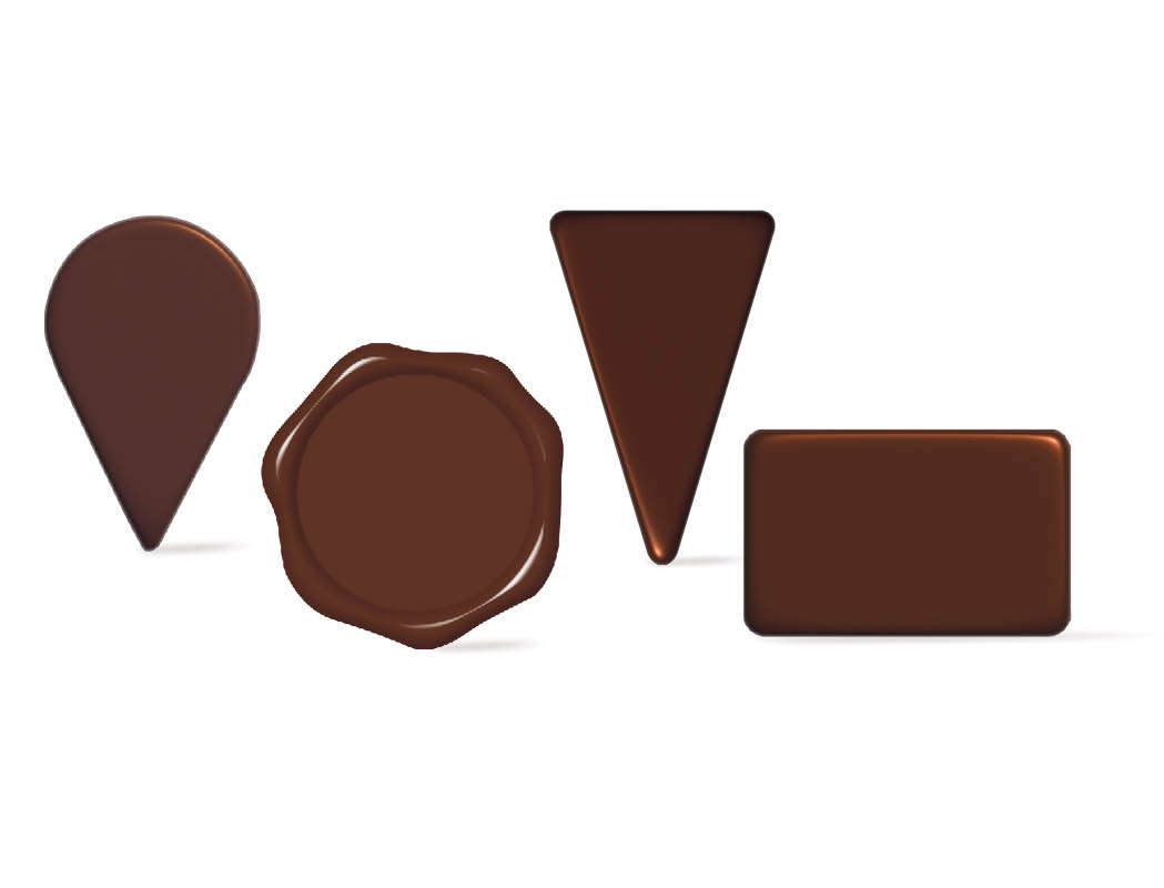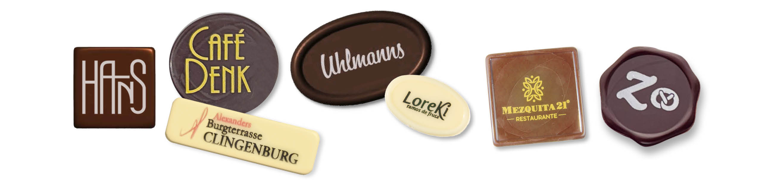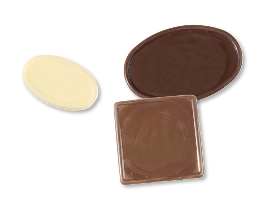Damit Ihr personalisierter Aufleger auf Ihren Produkten optimal wirkt, können Sie alle Formate in weißer, dunkler oder Milchschokolade bekommen.