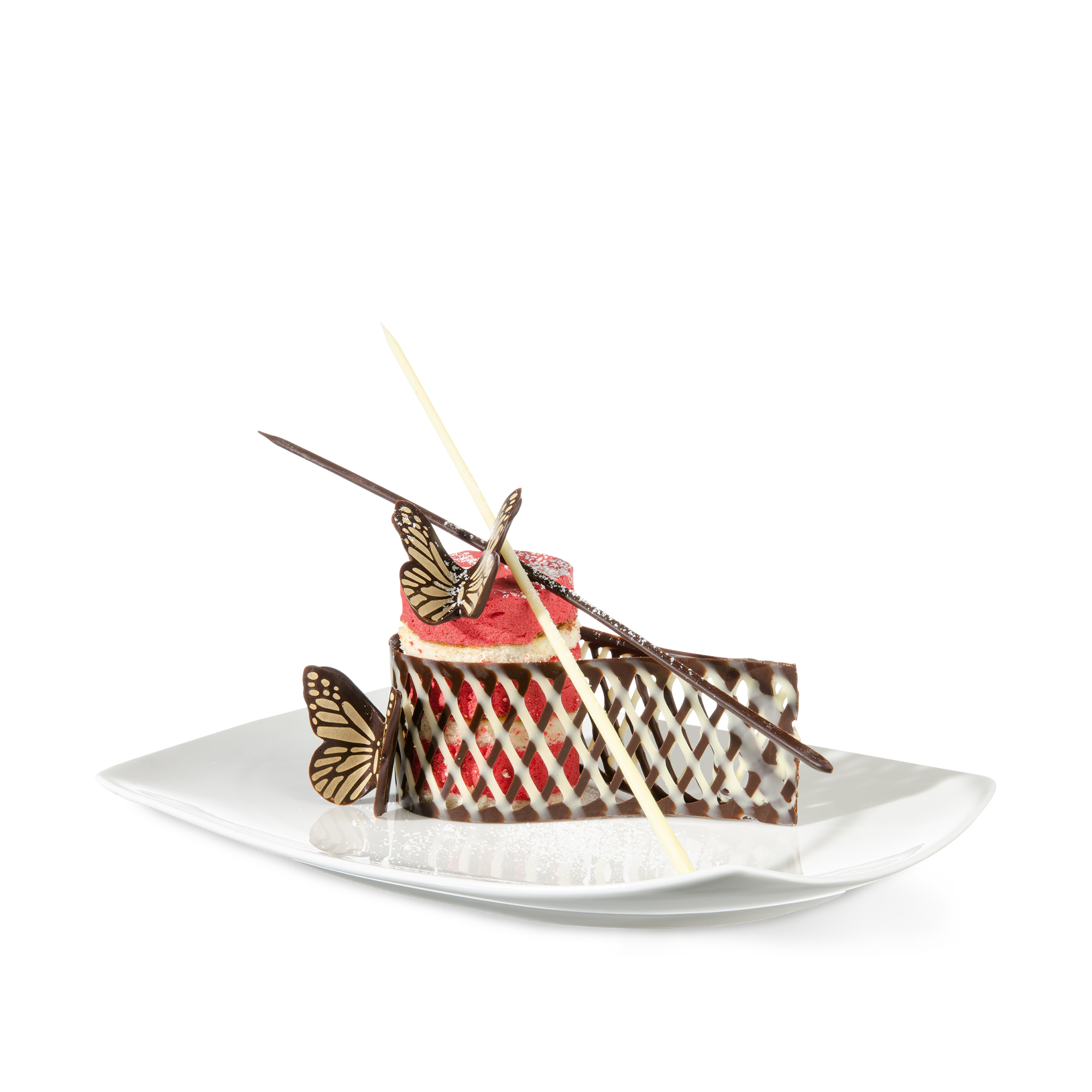 Die Schmetterlinge aus dunkler Schokolade sind farbig bedruckt. Das hübsche Dekor und der angenehme Zartbitter-Geschmack machen die Schmetterlinge zu einem universell verwendbaren Dekor. Sie sind das ganze Jahr über auf Torten, Törtchen, Desserts oder Eisbechern hübsch anzusehen. Verpackt sind sie zu 120 Stück in einer bruchsicheren Spezialschachtel.Feuchtigkeitsfest