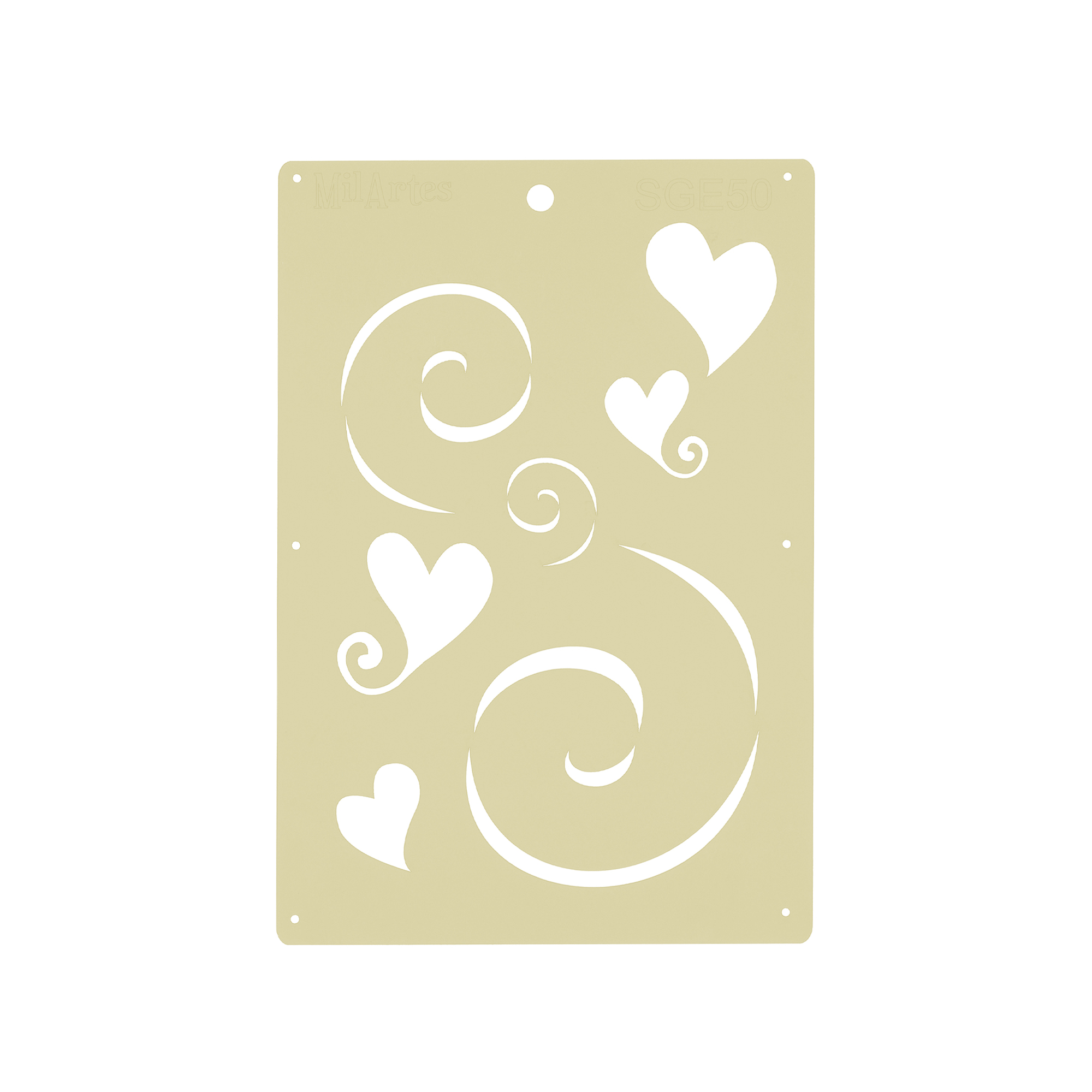 > 1 Schablone 20 x 30 cm mit Dekor "Herz Spiralen" 16 x 25 cm