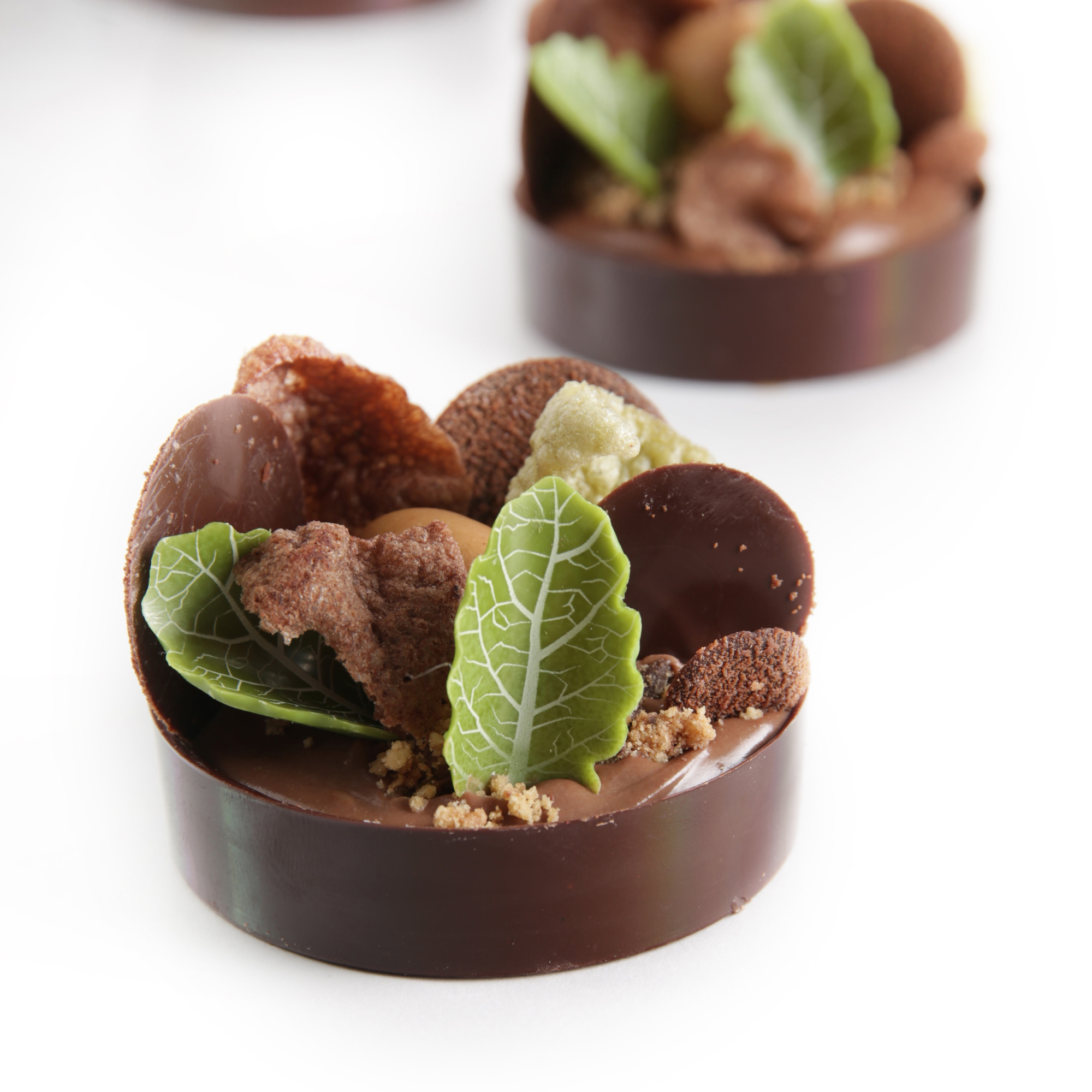 Diese großen Cups sind aus dunkler Schokolade hergestellt. Der angenehme Zartbittergeschmack harmoniert gut mit den möglichen Füllungen. Der obere Durchmesser von 70 mm und die niedrige Höhe von 18 mm machen diese Cups sehr gut verwendbar für kleine Törtchen und Desserts. Verpackt sind sie bruchsicher zu 66 Stück in einem Spezialkarton. Die einzelnen Trays aus dem Karton lassen sich sehr gut als Basis für die Befüllung, Fertigstellung und Zwischenlagerung der Desserts nutzen.Feuchtigkeitsfest